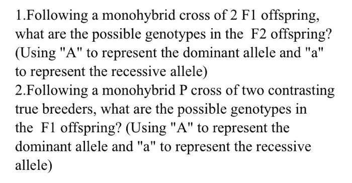 F1 monohybrid cross. All offspring are yy and have yellow seeds. This cross only examined one trait however many more traits can be observed at once. The results that he obtained and that you would predict for this experiment are.
