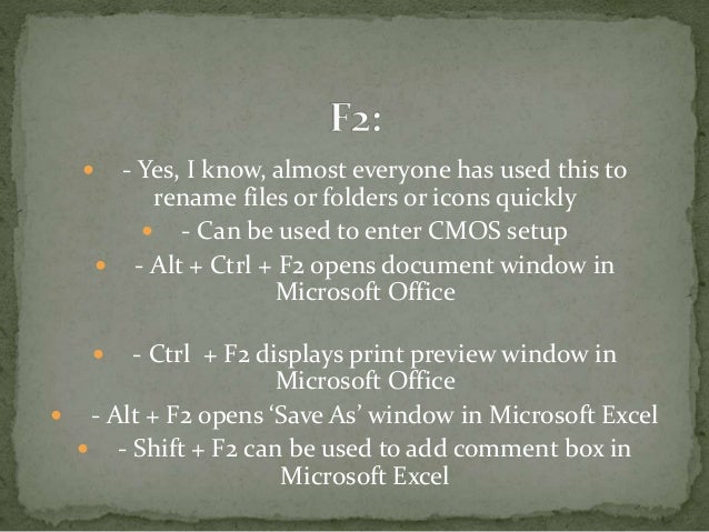 Function Keys Of Keyboard F1 F12 In Excel