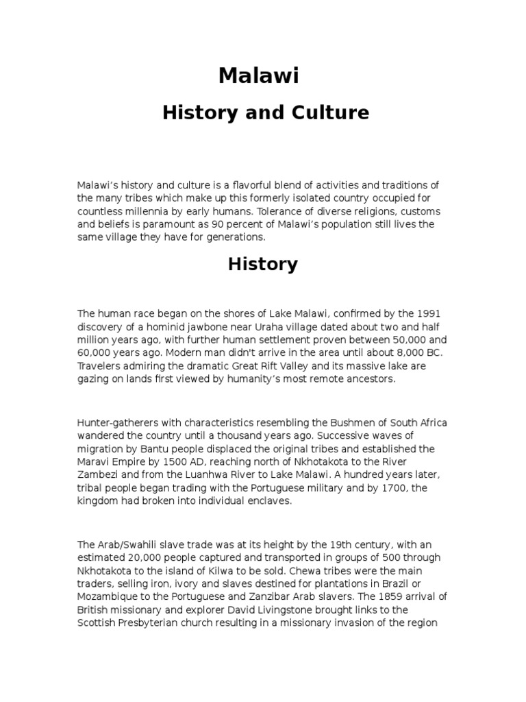 Before colonialism people were tied more to their tribes but because one tribe alone could not kick out the british many tribes came together and created a sense of nationalism. The history of malawi covers the area of present day malawi. The earliest known settled kingdom in the region of lake nyasa is that of the maravi confederacy.
