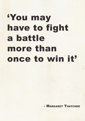 Dont take our word for it. She was the prime minister of great britain and margaret thatcher said you may have to fight a battle more than once to win it. 87 quotes from margaret thatcher.